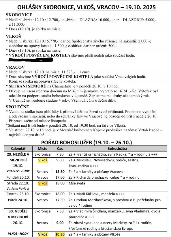 pořad bohoslužeb
